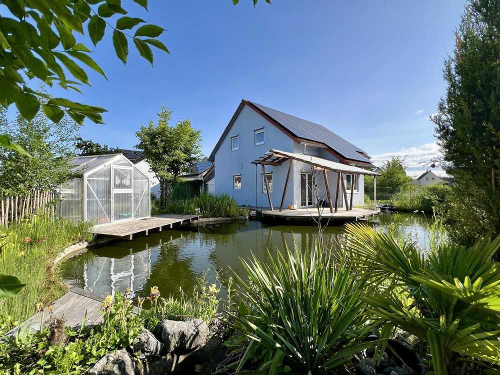 Aktuell ist der Außenbereich mit dem Prädikat ökologisch wertvoll als "Gartenteich- Idylle" angelegt, welcher durch eine vorhandene Treppe auch in heißen Tagen als Schwimmteich genutzt werden kann.