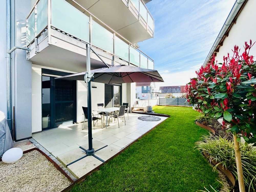 Ein weiteres Highlight dieser Wohnung ist der eigene, liebevoll gestaltete Garten mit einer großen, nicht einsehbaren Terrasse – Ihr privater Rückzugsort für entspannte Stunden im Freien. Dank des integrierten Bewässerungssystems und eines Mähroboters bleibt Ihr grünes Paradies stets gepflegt.