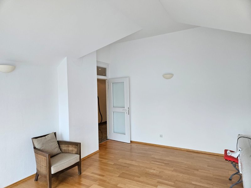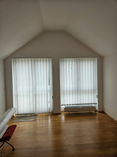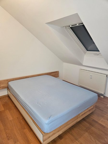 Das Schlafzimmer und die Küche haben eine Dachschräge. Die darin befindlichen Fenster und Rollos sind elektrisch bedienbar.
