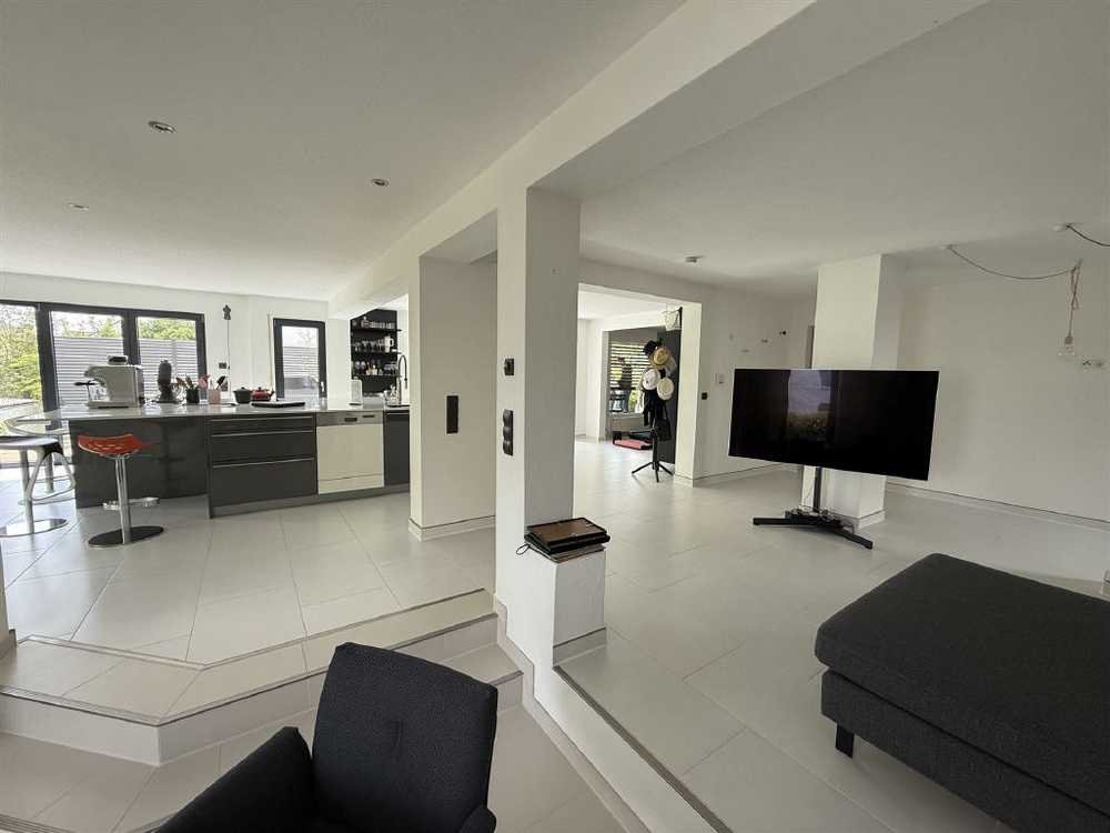 Der anschließende offene Wohnbereich ist ebenfalls sehr geschmackvoll gestaltet und lässt keine Wünsche offen. Ebenso das großzügige und moderne Badezimmer mit begehbarer Dusche und Waschmaschinenanschluss. Ein sehr großer Wohnbereich, der sich gut in zwei Zimmer aufteilen lassen würde und ein separates WC mit Bidet vervollständigen diese Ebene im Erdgeschoss.