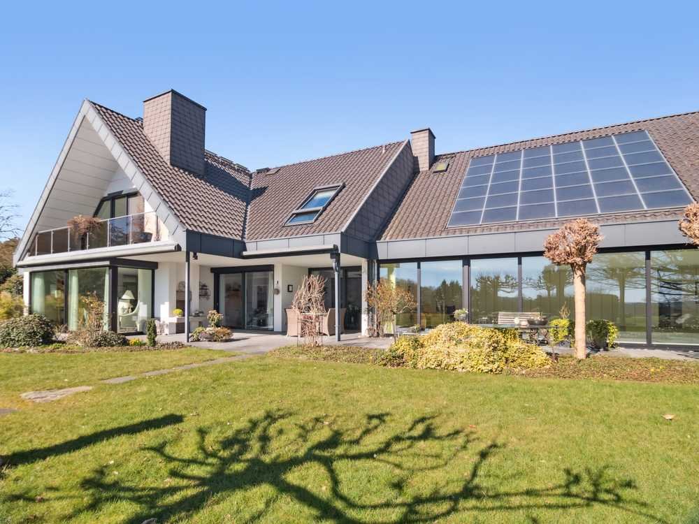 Dieses außergewöhnliche Anwesen auf einem 10.000 m² großen Parkgrundstück vereint exklusives Wohnen mit höchster Privatsphäre. In ruhiger und begehrter Lage bietet es einen unverbaubaren Panoramablick auf die umliegende Natur. Die harmonisch eingebettete Gartenlandschaft mit einem Pavillon, schafft eine perfekte Balance aus Ruhe und Schönheit. Die moderne Architektur und hochwertige Ausstattung verleihen dem Haus eine luxuriöse, komfortable Atmosphäre. Auf 436 m² Wohnfläche verteilen sich 11 Zimmer, die viel Raum für individuelle Gestaltung bieten. Herzstück des Hauses ist das großzügige Wohnzimmer mit Kamin. Das angrenzende Esszimmer eignet sich sowohl für repräsentative Anlässe als auch für entspannte Abende im privaten Kreis. Sechs Schlafzimmer mit großen Fenstern – teils mit Balkon oder Terrasse mit Außenkamin – bieten höchsten Wohnkomfort. Vier Badezimmer, eines davon en Suite, sind mit Rainshower Duschen, einer freistehenden Badewanne und hochwertigen Armaturen ausgestattet. Ein Highlight ist der große Innenpool, der von bodentiefen Fenstern umgeben ist und einen beeindruckenden Ausblick bietet. Dank moderner Pooltechnik, die vor kurzem erneuert wurde, Wärmepumpe und Solaranlage ist ganzjähriger Badespaß bei optimaler Temperatur garantiert – energieeffizient und nachhaltig. Das ca. 100 qm große Souterrain mit bodentiefen Fenstern kann als Homeoffice genutzt werden. Eine separate Einliegerwohnung mit eigenem Zugang bietet idealen Wohnraum für Gäste, Personal oder ein Au-pair – komfortabel und mit maximaler Privatsphäre. Das Haus ist mit modernster Technik ausgestattet, inklusive Personenaufzug, der für Barrierefreiheit sorgt, intelligenter Heiz- und Sicherheitssysteme sowie vier Garagenplätzen und zusätzlichen PKW-Stellplätzen.