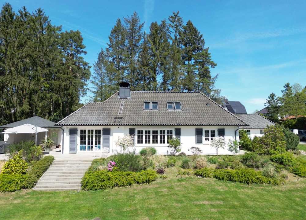 Stilvolles Landhaus in sehr schöner Lage. Das ursprünglich 1958 erbaute Landhaus bildet gemeinsam mit dem Garagen- und Gästehaus, dem separaten Freisitz und einem großen, geschütztem Innenhof ein repräsentatives und sehr ansprechendes Gebäudeensemble, wie man es selten findet.
