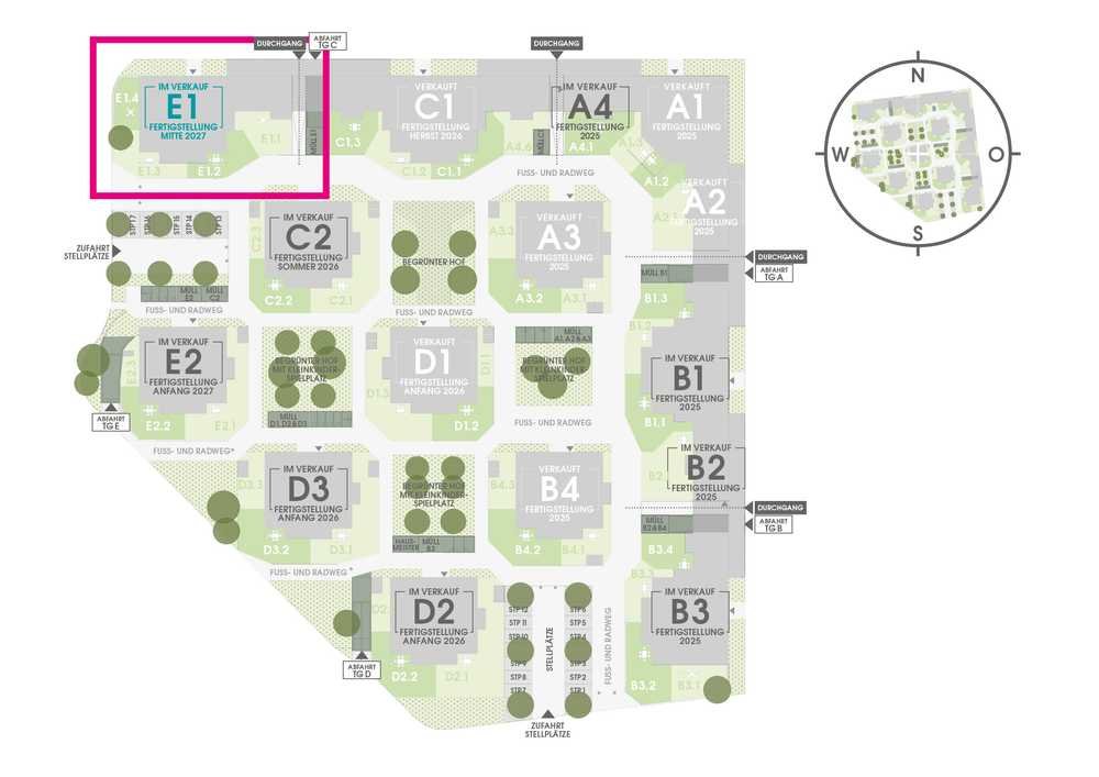Auch die fünf eigenständigen Tiefgaragen bilden jeweils eine Untereigentümergemeinschaft.