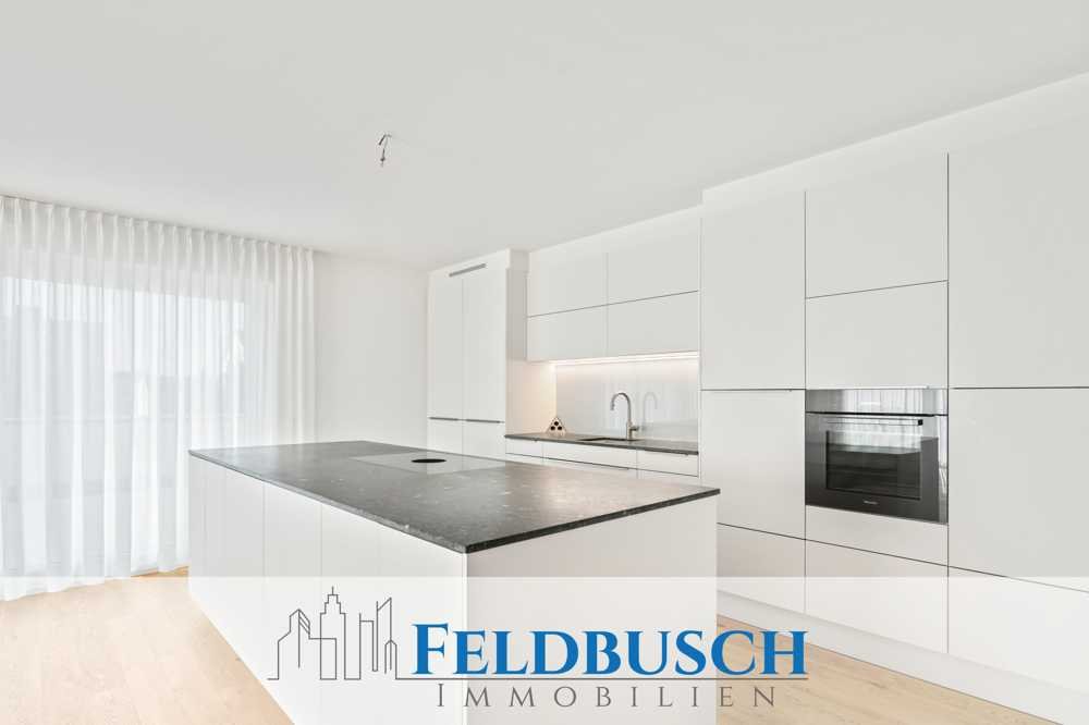 Die neuwertige Einbauküche, ausgestattet mit hochwertigen Geräten, fügt sich harmonisch in den Raum ein. Sie wurde von einem Schreiner speziell für diese Wohnung angefertigt und überzeugt mit erstklassiger Verarbeitung sowie raffinierter Gestaltung. Dies ist separat zu erwerben und nicht im Kaufpreis enthalten.
