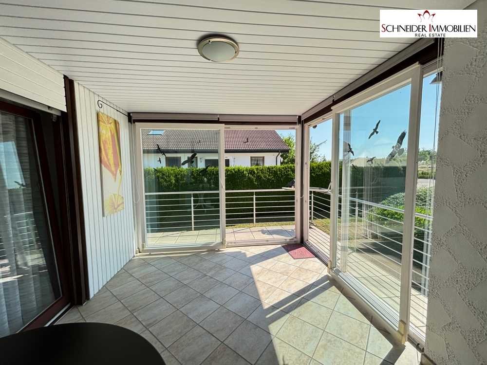 Im Erdgeschoss befindet sich ein sehr großes Wohnzimmer mit fast 30 m² Wohnfläche und angrenzendem offen gestalteten Esszimmer. Ferner sind auf dieser Etage das helle Schlafzimmer, zwei Kinderzimmer/Büro, ein Gästezimmer, ein Tageslicht-Badezimmer, ein Gäste-WC ebenso mit Tageslicht sowie eine große Diele mit Garderobe. Ein Highlight ist insbesondere der tolle Ausblick auf die freie Natur und Landschaft, welcher während dem Kochen und Zubereiten der Mahlzeiten vom Küchenraum aus möglich ist. Der Süd-Balkon ist überwiegend verglast und sowohl vom Esszimmer als auch vom Schlafzimmer aus begehbar (unbeheizter Wintergarten). Die sonnige Lage des Balkons schafft eine warme und einladende Atmosphäre, perfekt für gesellige Zusammenkünfte oder entspannte Momente mit der Familie.