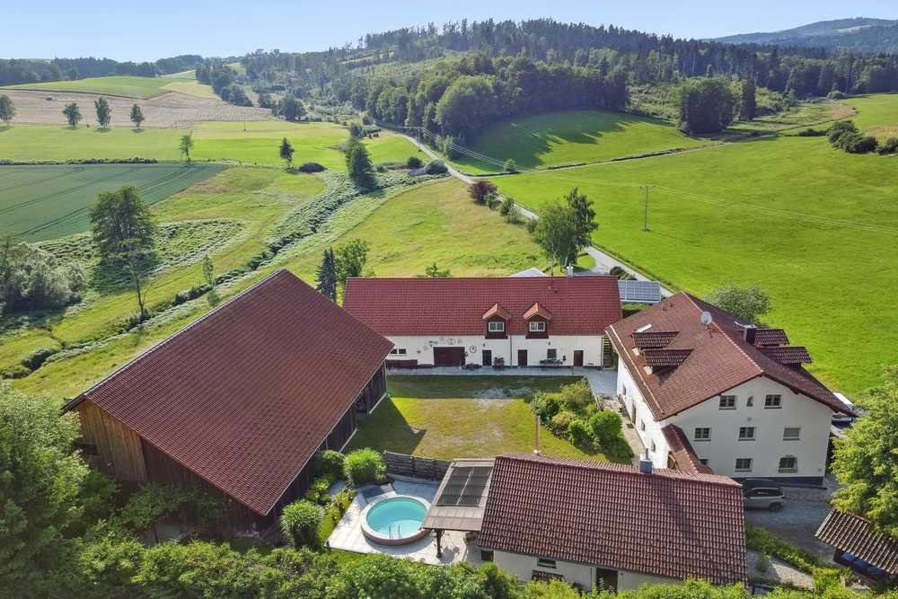 Die gesamte Grundstücksfläche beträgt 89.746 m²und verteilt sich auf insgesamt 8 Flurnummern. Allein auf die arrondierte Hoffläche (Grünland) entfallen 15.940 m², also knapp 1,6 Hektar. Die weiteren landwirtschaftlichen Flächen von ca. 1,9 Hektar und Forstflächen von ca. 5,5 Hektar liegen in einem Radius von ca. 300 m – 800 m. Das Grünland ist seit Januar 2017 an einen Landwirt verpachtet.