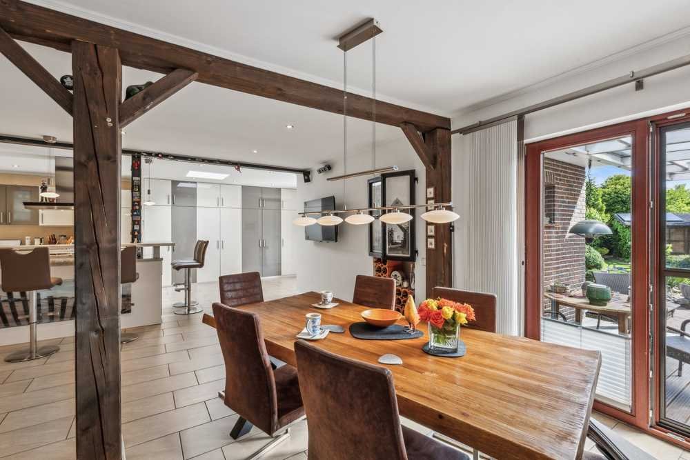 Dieses liebevoll gepflegte Einfamilienhaus vereint den besonderen Charme vergangener Zeiten mit modernstem Wohnkomfort – ein echtes Wohlfühl-Zuhause, das durch seine stilvolle Ausstattung, seine großzügige Raumaufteilung und seinen traumhaften Garten begeistert. Ursprünglich im Jahr 1939 erbaut, wurde das Haus in den Folgejahren umfassend modernisiert und erweitert. Ein großzügiger Anbau aus dem Jahr 1981 vergrößerte nicht nur die Wohnfläche, sondern schuf auch eine offene, luftige Raumstruktur, die heutigen Wohnansprüchen voll und ganz entspricht. Auf rund 150 m² Wohnfläche und 4,5 Zimmern bietet das Haus viel Platz für vielfältige Nutzungsmöglichkeiten. Mit nur geringem Aufwand lassen sich ein bis zwei zusätzliche Schlafzimmer realisieren. Das Herzstück des Hauses ist der offene, lichtdurchflutete Wohn- und Essbereich mit einer modernen, integrierten Küche mit Kochinsel. Großzügige Fenster lassen viel Tageslicht herein und schaffen zu jeder Tageszeit eine helle und einladende Atmosphäre. Zwei moderne Bäder bieten zusätzlichen Komfort und sorgen dafür, dass sich auch mehrere Personen gleichzeitig ungestört im Haus bewegen können. In den letzten Jahren wurde besonders viel Wert auf energetische und bauliche Qualität gelegt: Die Fassade erhielt im Jahr 2000 eine umfassende Außendämmung, sämtliche Fenster wurden über die Jahre ausgetauscht, das Dach im Jahr 2008 vollständig erneuert, und 2018 wurde eine moderne, effiziente Ölzentralheizung eingebaut. All diese Maßnahmen machen das Haus nicht nur sofort bezugsfertig, sondern auch energetisch attraktiv. Ein echtes Highlight ist der weitläufige, mit viel Liebe zum Detail angelegte Garten. Auf fast 1.000 m² Grundstücksfläche finden sich ein gepflegter Pool, ein idyllischer Teich, ein großes beheizbares Gartenhaus, das zum Feiern einlädt sowie zahlreiche gemütliche Ecken zum Entspannen, Spielen oder Feiern. Ob Grillabende mit Freunden, sommerliche Pooltage mit der Familie oder einfach ein ruhiger Morgenkaffee im Grünen – hier lässt sich der Alltag wunderbar vergessen. Der Garten bietet zudem genügend Raum für individuelle Gestaltungsideen. Abgerundet wird das Angebot durch eine große Garage mit Platz für zwei Fahrzeuge und zusätzlichem Stauraum. Dieses Haus ist mehr als nur ein Ort zum Wohnen – es ist ein Ort zum Leben. Hier verbinden sich historische Substanz, moderne Technik, großzügiges Wohnen und ein Gartenparadies zu einem Zuhause, das Sie jeden Tag aufs Neue genießen werden. Überzeugen Sie sich selbst bei einer persönlichen Besichtigung!