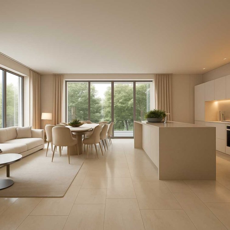Das Herzstück bildet ein großzügiger Wohn- und Essbereich mit maßgefertigter Küche, edlen Materialien und Kamin. Zwei Schlafzimmer, Ankleidezimmer, Vorratsraum, Gäste-WC und ein stilvolles Tageslichtbad bieten höchsten Wohnkomfort auf einer Ebene.