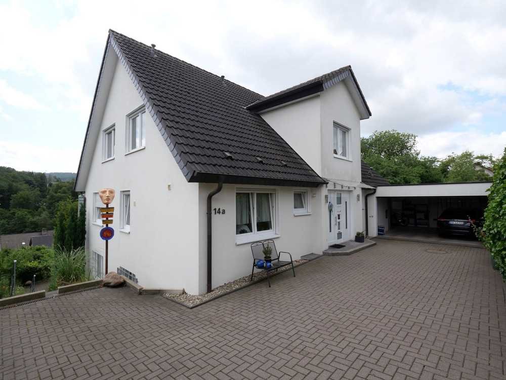 Das Haus verfügt über eine gepflasterte Zufahrt (Wegerecht) und eine am Haus angrenzende Doppelgarage. Der weitläufige Garten ist terrassenartig angelegt und mit Bäumen und Sträuchern bepflanzt. Für die Warmwasserbereitung wurde zusätzlich eine Solaranlage auf dem Dach installiert.