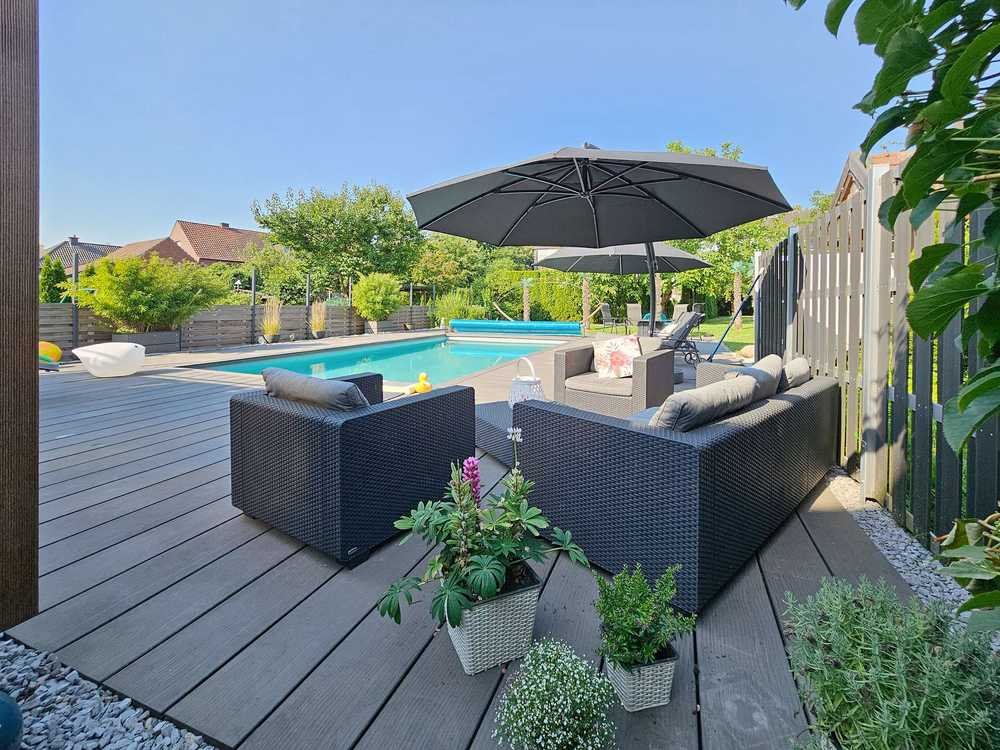 Nehmen wir diese Begrifflichkeit auf - diese außergewöhnliche Eigentumswohnung mit Hauscharakter erstreckt sich über besagte drei Ebenen und verfügt zusätzlich nicht nur über eine atemberaubende Dachterrasse, die einen herrlichen ruhigen Freisitz mit Ausblick bietet, sondern auch über einen riesigen parkähnlichen Garten, der Ihnen nicht nur Platz für Erholung mitsamt einer herrlichen Poollandschaft bietet, sondern auch über einen zusätzlichen Bauplatz in zweiter Reihe verfügt.