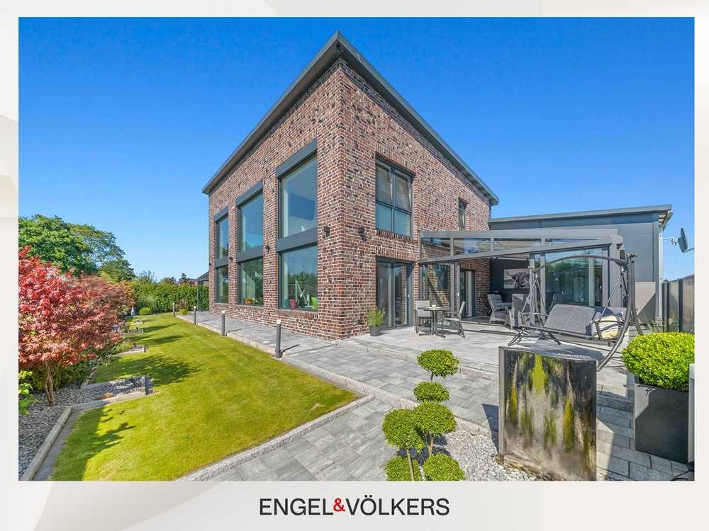 Dieses exklusive Architektenhaus befindet sich in Hage auf einem großzügigen Grundstück von etwa 1.200 m² und wurde im Jahr 2023 erbaut. Es besticht durch moderne Architektur, hochwertige Materialien und eine perfekte Kombination aus Wohnkomfort und Energieeffizienz. Das Haus ist mit einer Luftwärmepumpe, einer 29,8 kW Solaranlage sowie 3-fach verglasten Fenstern ausgestattet und erfüllt die neuesten KFW-Anforderungen, was eine hohe Energieeffizienz gewährleistet. Die Außenwände bestehen aus hochwertigem Wittmunder Architektenklinker, während die Halle und das Dach mit anthrazitfarbenen Alu-Isopaneelen verkleidet wurden. Für zusätzlichen Komfort sorgen elektrische Rollläden und Raffstores zur Gartenseite. Das Herzstück des Hauses ist das Wohnzimmer mit einer beeindruckenden Deckenhöhe von ca. 7 Metern und bodentiefen Fenstern, die einen wunderschönen Blick ins Grüne bieten. Der Vinylfußboden verleiht dem Raum eine moderne Note. Im Erdgeschoss befinden sich zudem ein Gäste-WC mit ebenerdiger Dusche, ein kleines Büro, eine offene Küche und ein Hauswirtschaftsraum (HWR). Das Obergeschoss bietet ein luxuriöses Badezimmer mit Sauna, Badewanne, hochwertigen Badmöbeln von Villeroy & Boch, Grohe Armaturen, Dusche, Bidet und WC, sowie ein Schlafzimmer mit Ankleidezimmer. Die Hauptküche ist mit einer hochwertigen Miele Küche in weiß Hochglanz ausgestattet. Zusätzlich gibt es eine HWR Küche mit NEFF-Geräten und Anschlüssen für Waschmaschine und Trockner. Der Außenbereich umfasst einen Sommergarten mit elektrischem Beschattungssystem und Schiebeelementen an der Seite sowie einen Wintergarten mit Beschattungsfunktion und Fußbodenheizung. Die Halle verfügt über zwei Sektionaltore, eines mit den Maßen ca. 4×4 m und das andere ca. 4×3 m, was vielfältige Nutzungsmöglichkeiten bietet. Dieses moderne Architektenhaus in Hage ist ein echtes Highlight für anspruchsvolle Käufer, die Wert auf Qualität und Nachhaltigkeit legen. Ebenfalls hervorzuheben ist, dass das komplette Mobiliar & Inventar im Kaufpreis enthalten sind. Die großzügigen Räume und die beeindruckende Deckenhöhe im Wohnzimmer schaffen eine offene und helle Wohnatmosphäre. Die perfekt integrierte Halle rundet das Gesamtbild ab und macht dieses Haus zur idealen Wahl für alle, die modernes Design und innovativen Wohnkomfort suchen.