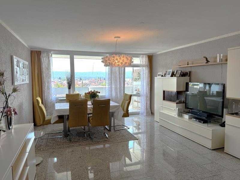 Die angebotene 3-Zimmer-ETW befindet sich im 9. und zugleich obersten Geschoss eines im Jahr 1976 erstellten Wohnkomplexes in Durmersheim. Hier befinden sich 4 Wohnungen, deren Bewohner auf Ruhe und gepflegtes Wohnen achten. Die Wohnung verfügt über 2 Balkone, im Wohn- und Schlafzimmer, deren tolle Aussicht und der Weitblick über die Dächer von Durmersheim bis zum Schwarzwald einzigartig ist und immer wieder fasziniert. Sie wohnen hier in absoluter Abgeschiedenheit, weg von jeglicher Geräuschkulisse. Die Wohnung wurde vor einigen Jahren komplett modernisiert. Bad und WC wurden aktuell nochmals modernisiert. Es wurden ausschließlich hochwertige Materialien verwendet. So entstand eine topmoderne, sehr schöne Wohnung, die sich auch heute noch in tadellosem und neuwertigem Zustand zeigt. Luxuriös ist der Granitboden in nahezu allen Räumen; Schüco Kunststoffisolierfenster; Austausch der alten in moderne Heizkörper; Austausch sämtlicher Türen; alle Wände in Rauputz; Modernisierung von Bad und WC; neuer Fliesenbelag der Balkone. Eine hochwertig ausgestattete Einbauküche ist im Kaufpreis bereits enthalten. Sämtliche Einkaufsmöglichkeiten des täglichen Bedarfs sowie die öffentlichen Verkehrsmittel sind in wenigen Minuten zu erreichen. Eine Bushaltestelle ist vor Ort. Zur Wohnanlage gehört ein saniertes Hallenbad mit Sauna.