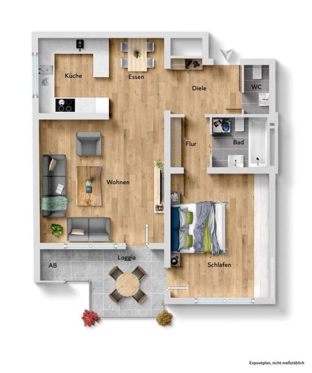 Langjährig vermietete 2-Zimmer-Wohnung mit Entwicklungspotenzial bei der Mieteinnahme.