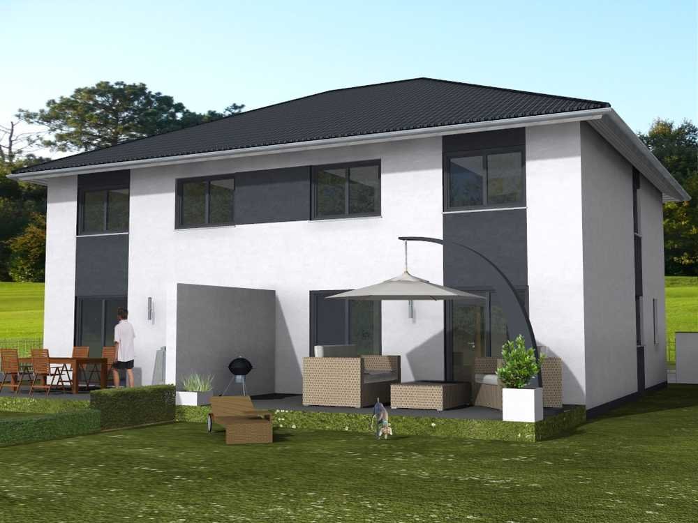 Das Haus verfügt über zwei Vollgeschosse, was für eine optimale Raumnutzung ohne Dachschrägen sorgt. Die gezeigten Abbildungen enthalten möglicherweise Sonderwünsche, die individuell realisiert werden können.