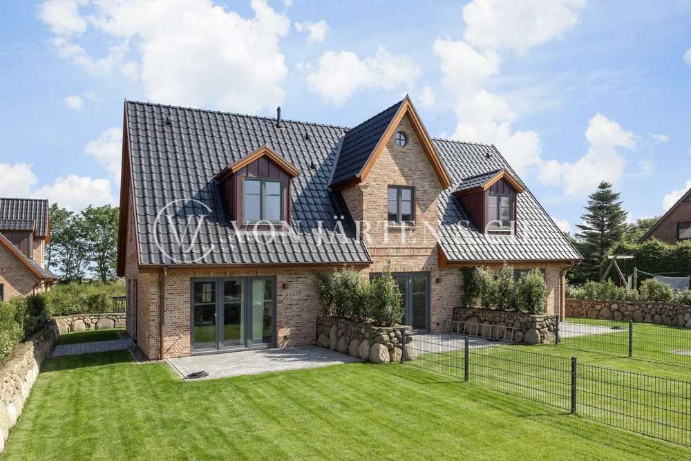 Die Architektur verbindet stilvolle Moderne mit traditionellen Sylter Elementen. Hochwertige, nachhaltige Materialien und eine ökologische Gasheizung sorgen für zeitgemäßen Wohnkomfort.