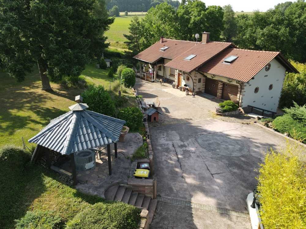 Dieses außergewöhnliche Anwesen befindet sich in idyllischer Alleinlage, eingebettet in eine malerische Landschaft aus Wald, Wiesen und Feldern. Das großzügige Grundstück ist vollständig eingezäunt und bietet vielfältige Nutzungsmöglichkeiten als Weide, Garten oder Rückzugsort mit liebevoll angelegten Zierflächen. Ein romantischer Grillplatz mit Pavillon, ein Koi-Teich sowie eine gefasste Quelle unterstreichen den naturnahen und autarken Charakter der Liegenschaft.