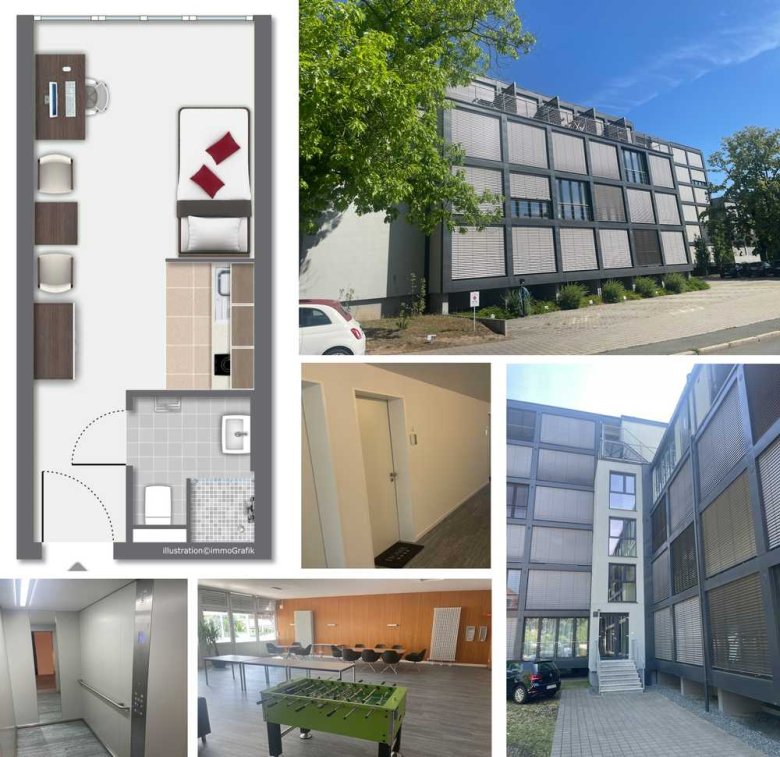 Das Appartement besteht aus einem Zimmer mit raumhohen Fenster mit elektrischen Rollläden und einem Bussystem mit elektr. Zugangskontrolle. Dank der intelligenten Raumaufteilung und der Möblierung bietet der Wohnraum genügend Platz für Wohn- und Schlafbereich. Das große Fenster sorgt für ausreichend Tageslicht und schaffen eine angenehme Atmosphäre. Durch den französischen Balkon und die große Öffnung entsteht eine Art "Balkongefühl". Die Ausstattung und das stilvolle Design schaffen eine gemütliche Wohnatmosphäre.