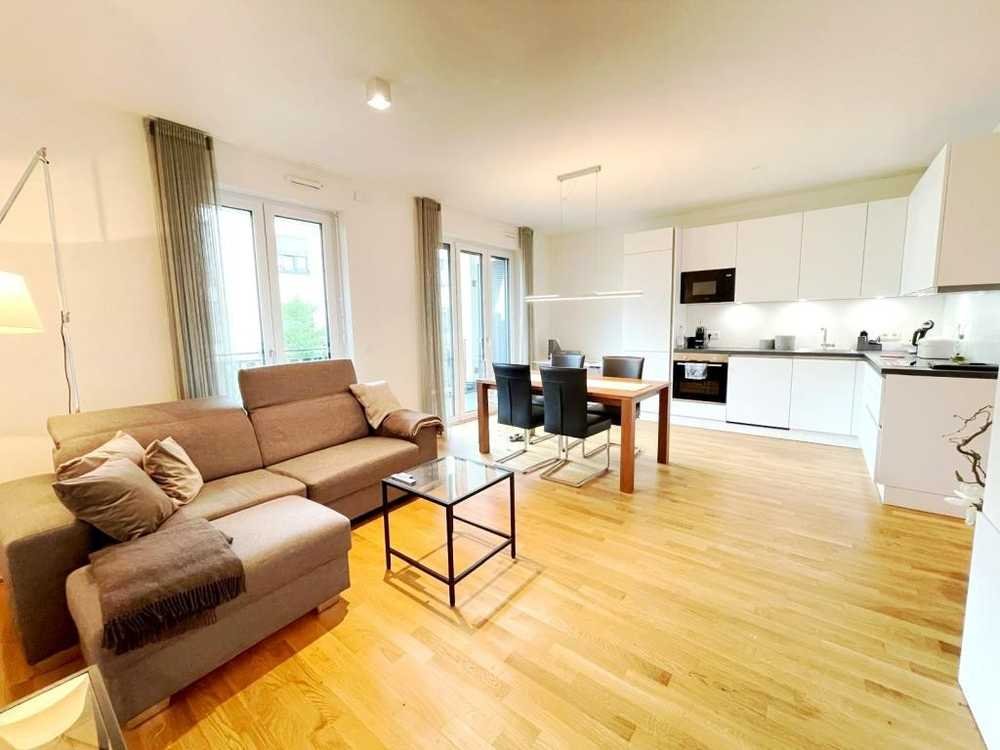 Anspruchsvolles Wohnen mit herrlichem Westbalkon auf ca. 59 m² beschreibt die im Dörnberg-Areal liegende 2-Zimmer-Wohnung aus dem Jahr 2022. Der Grundriss ist dank der Zonierung und des Abstellraums (ca. 2,54 m²) nicht nur praktisch, sondern auch modern. Ein offen gestalteter Wohn-, Koch- und Essbereich mit ca. 29 m² bildet den Mittelpunkt der Wohnung. Der Zugang zum Westbalkon mit ca. 10 m², der damit einhergehende Lichteinfall sowie das Eichenholzparkett sorgen für eine besondere Wohnatmosphäre. Die moderne Einbauküche in L-Form fügt sich durch weiße touchless-Fronten perfekt ins Wohnbild ein. Die Ausstattung der Küche umfasst eine Mikrowelle, einen Backofen, ein vierfaches Ceran-Kochfeld, eine Kühl-Gefrierkombination sowie ausreichend Stauraum. Die Küche kann für einen zusätzlichen Kaufpreis von 10.000 EUR abgelöst werden. Neben einem Esstisch findet auch eine gemütliche Wohnecke ausreichend Platz in dem großzügigen Raum.