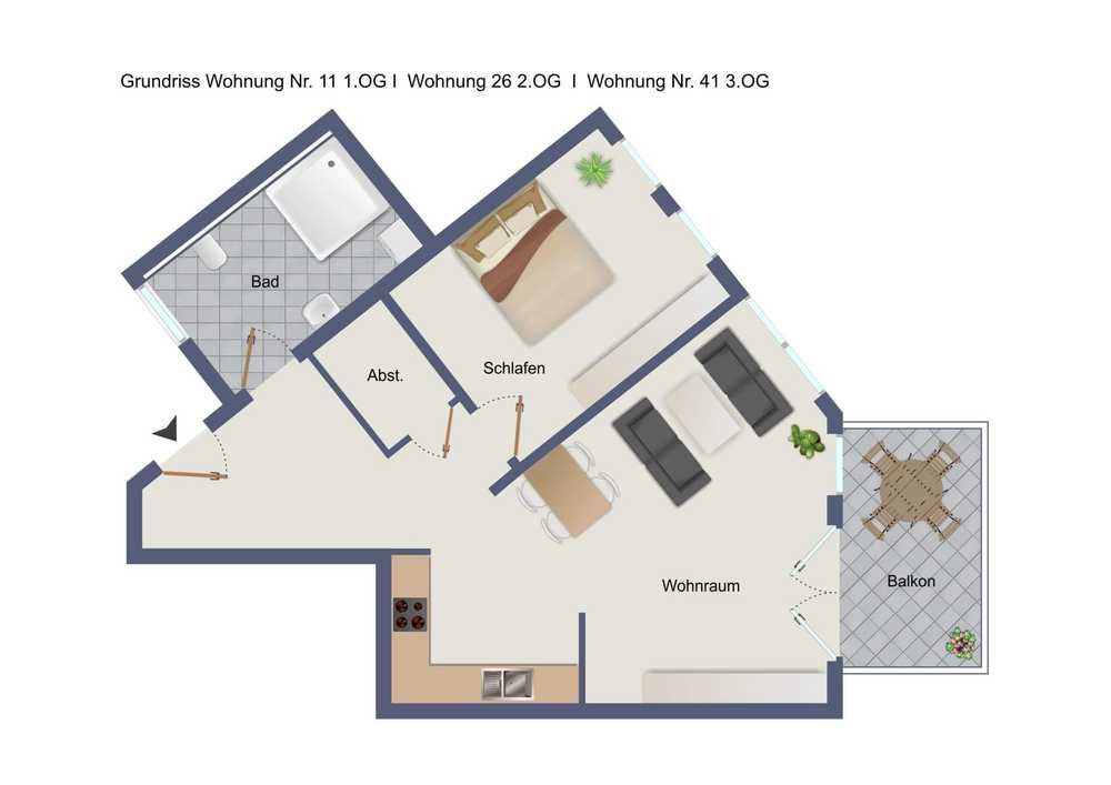 Die gut geschnittenen und effizient gestalteten Grundrisse mit 2 - 3 Zimmern bieten unterschiedliche Wohnflächen von ca. 58 m² bis ca. 85 m². Diese Vielseitigkeit macht die Wohnungen ideal für Singles, Paare jeden Alters oder Familien mit Kindern. Jede Wohnung verfügt über große Fensterflächen, die die Räume hell und freundlich wirken lassen und viel Licht in den Wohnbereich bringen. Zudem bietet jede Einheit einen großen und attraktiven Balkon, sodass Sie die warmen Tage ausgiebig genießen können.