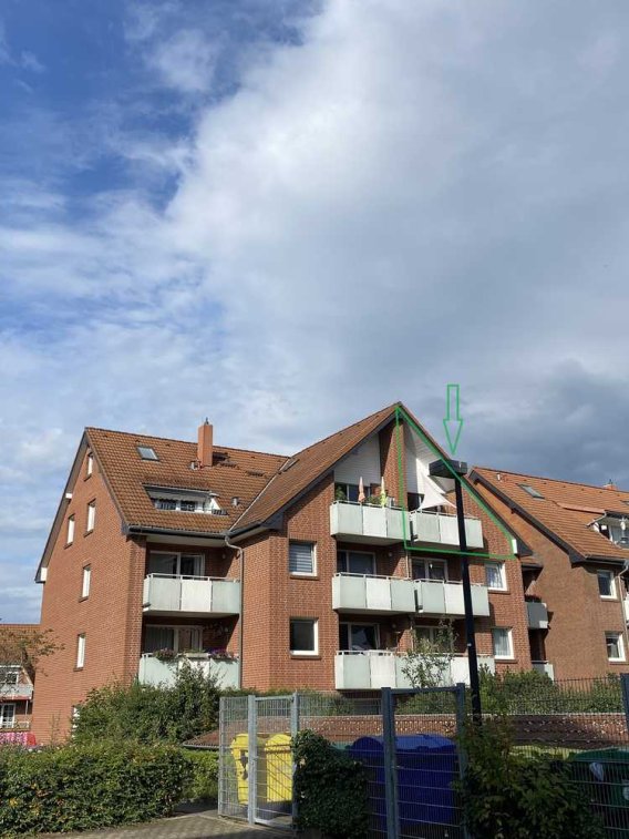 Die hier zum Verkauf angebotene schöne Wohnung liegt im Dachgeschoss eines Mehrfamilienhauses und erstreckt sich über zwei Ebenen, die durch eine Holztreppe miteinander verbunden sind. Das Gebäude sowie die gesamte Wohnanlage zeichnen sich durch ihr solides Erscheinungsbild geprägt durch roten Ziegelverblendstein aus. Es fügt sich so hervorragend in die Baustruktur des begehrten Wohngebietes Röthegrund I ein.