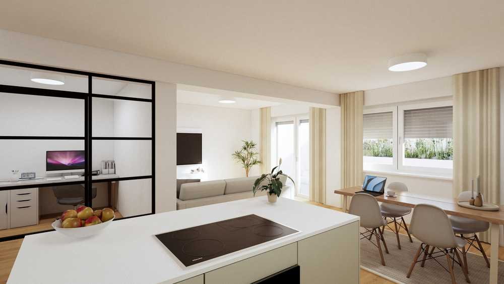 Dank eines 3D-Modells können alle individuellen Wünsche direkt eingeplant und visualisiert werden. Die Ausstattung umfasst Laminat- und Fliesenböden sowie moderne Sanitärobjekte laut Baubeschreibung (siehe Exposé).