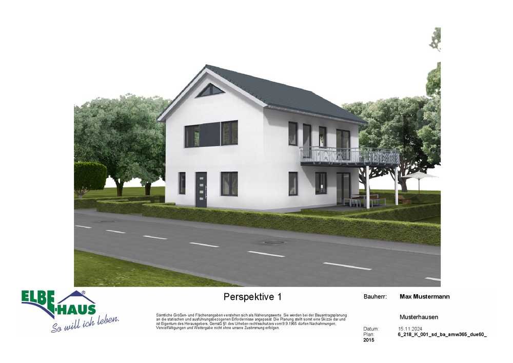 Dieses innovative Elbe-Haus® wird in massiver Bauweise von qualifiziertem Fachpersonal errichtet. Wir planen und projektieren nach Ihren Vorstellungen und Wünschen und somit ist wirklich jedes Haus einzigartig. Beachten Sie bitte, dass das abgebildete Haus lediglich ein Bebauungsbeispiel ist. Das Grundstück kann unter Berücksichtigung der örtlichen Bauvorschriften mit Ihrem Wunschhaus von Elbe-Haus® errichtet werden.