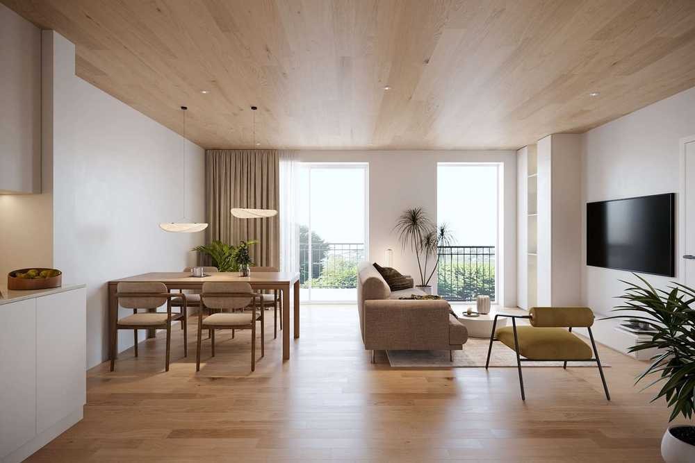 • Massivholzbauweise mit Sichtholzdecken für ein gesundes Wohnklima