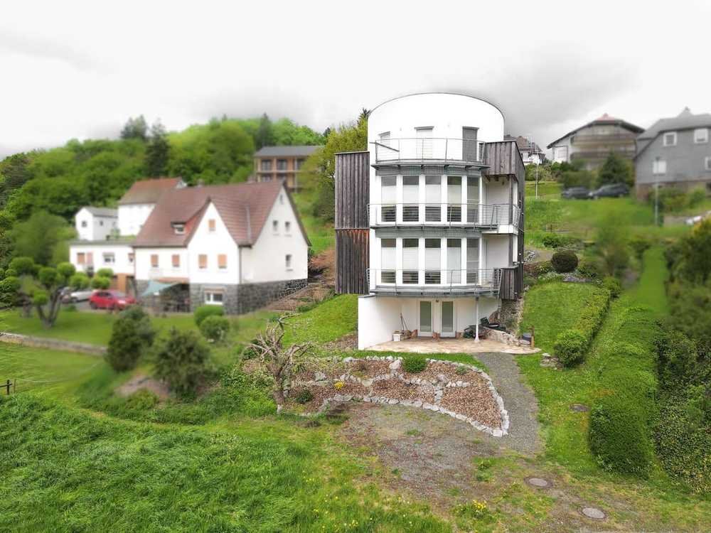 Diese außergewöhnliche Immobilie vereint architektonische Raffinesse mit einem naturnahen Lebensgefühl. Das Gebäude beeindruckt durch seine runde Bauform, großzügige Fensterfronten und eine klare, moderne Gestaltung. Auf insgesamt vier Etagen erwarten Sie zwei abgeschlossene Wohneinheiten mit offenem Grundriss, hochwertigen Ausstattungsdetails und viel Tageslicht.