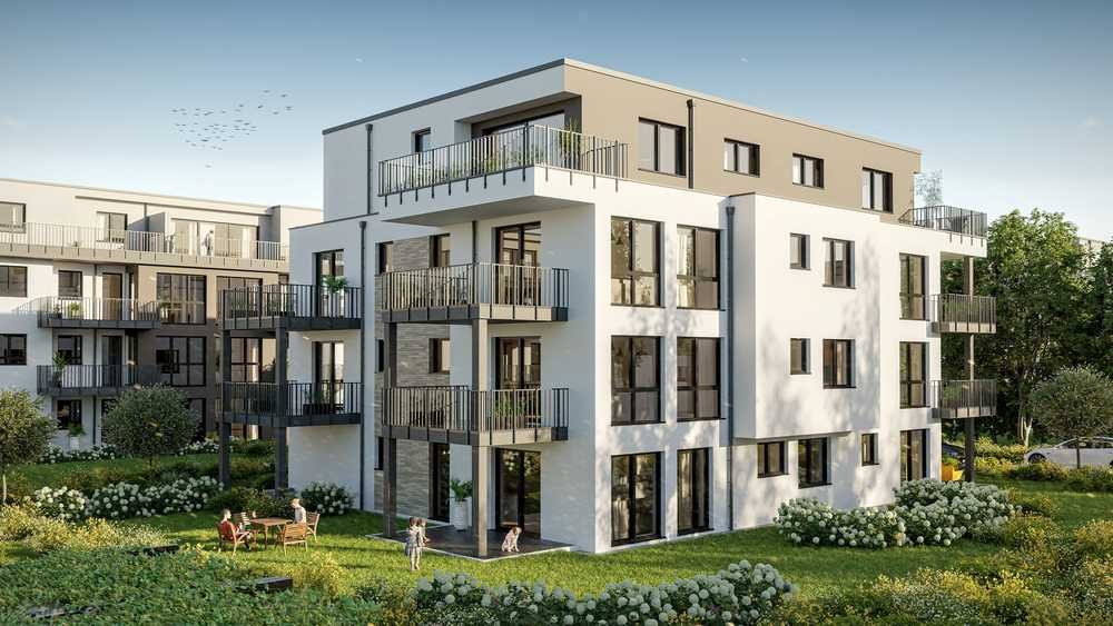 Das 3-geschossige Mehrfamilienhaus gewinnt durch die klare Gliederung der Fassade. Die Wohnungen überzeugen durch ihre gelungene Verbindung von Licht, Exklusivität und optimaler Nutzungsmöglichkeit. Die Wirkung der bodentiefen Fenster mit der feinen Unterteilung wird durch die transparenten Balkonbrüstungen unterstrichen. Farben, Formen und Materialien sind aufeinander abgestimmt. Eine besondere Atmosphäre entsteht in den Staffelgeschoss-Wohnungen.