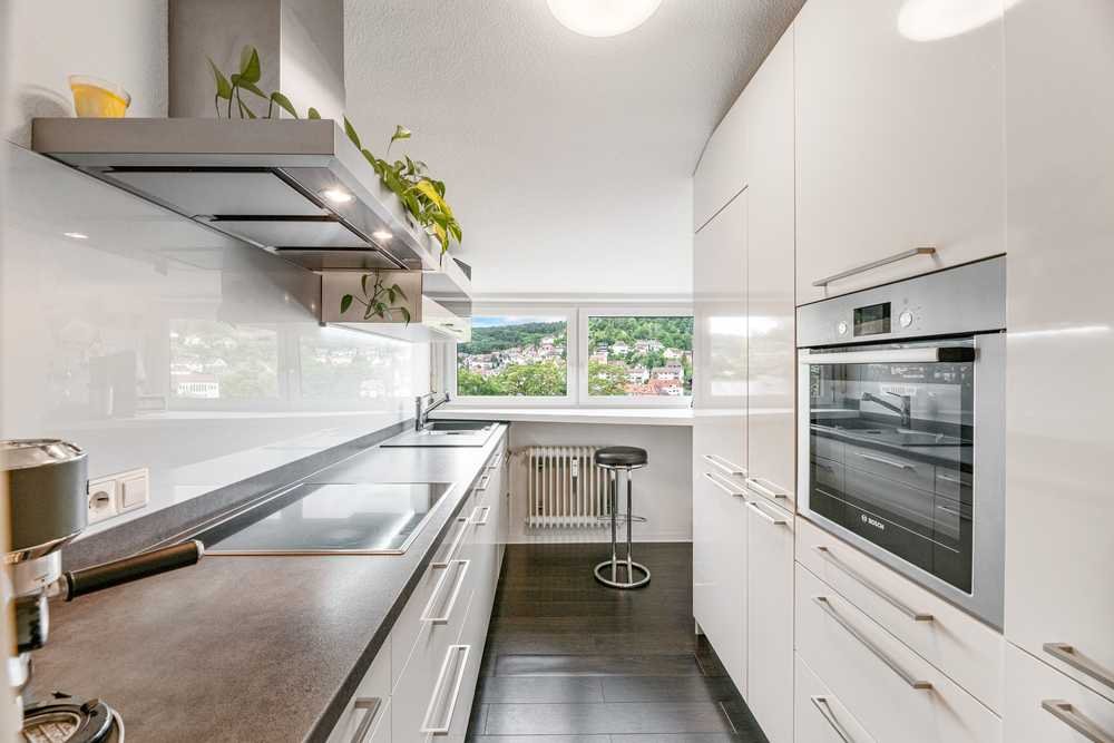 Die Wohnung befindet sich im obersten Geschoss des Wohnhauses. Die Wohnfläche erstreckt sich über ca. 85 m² und teilt sich auf in Woh- und Esszimmer mit Balkon, Schlafzimmer, Kinderzimmer/ Büro, einer Küche sowie einem Badezimmer und einem separaten WC. Von allen Räumen aus genießen Sie einen bezaubernden Ausblick ins Grüne und auf die Stadt.