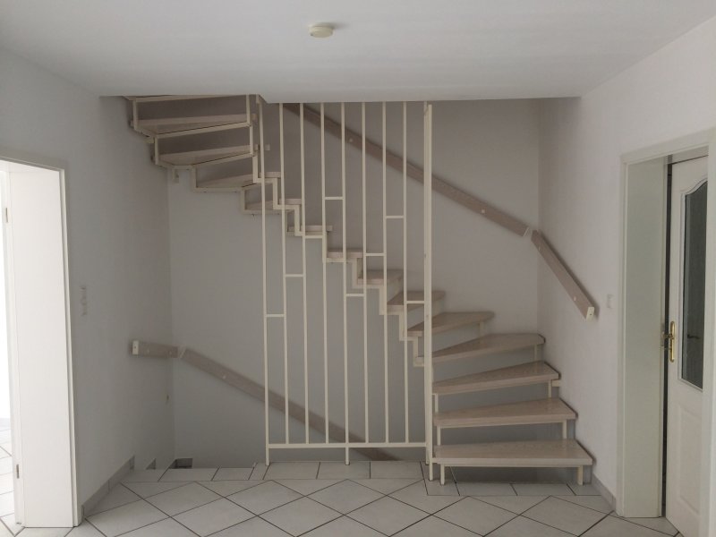 Eine offene Treppe führt vom Flur in das Dachgeschoss.