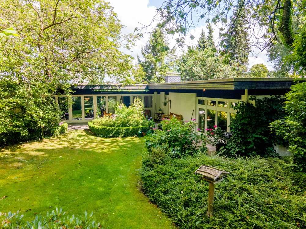 Der 1971 erbaute Bungalow befindet sich auf einem ca. 4.429 m² großen Grundstück in begehrter Südlage, eingebettet in eine parkähnliche Gartenlandschaft, die Ruhe, Privatsphäre und Raum für individuelle Gestaltung bietet. Auf ca. 194 m² Wohnfläche verteilen sich sechs vielseitig nutzbare Zimmer. Herzstück des Hauses ist der erweiterte Wohn- und Essbereich. Der Anbau aus dem Jahr 1977 integriert charmant einen ehemals außenliegenden Kamin in den Innenraum und schafft damit eine wohnliche Atmosphäre mit Blick in den weitläufigen Garten.