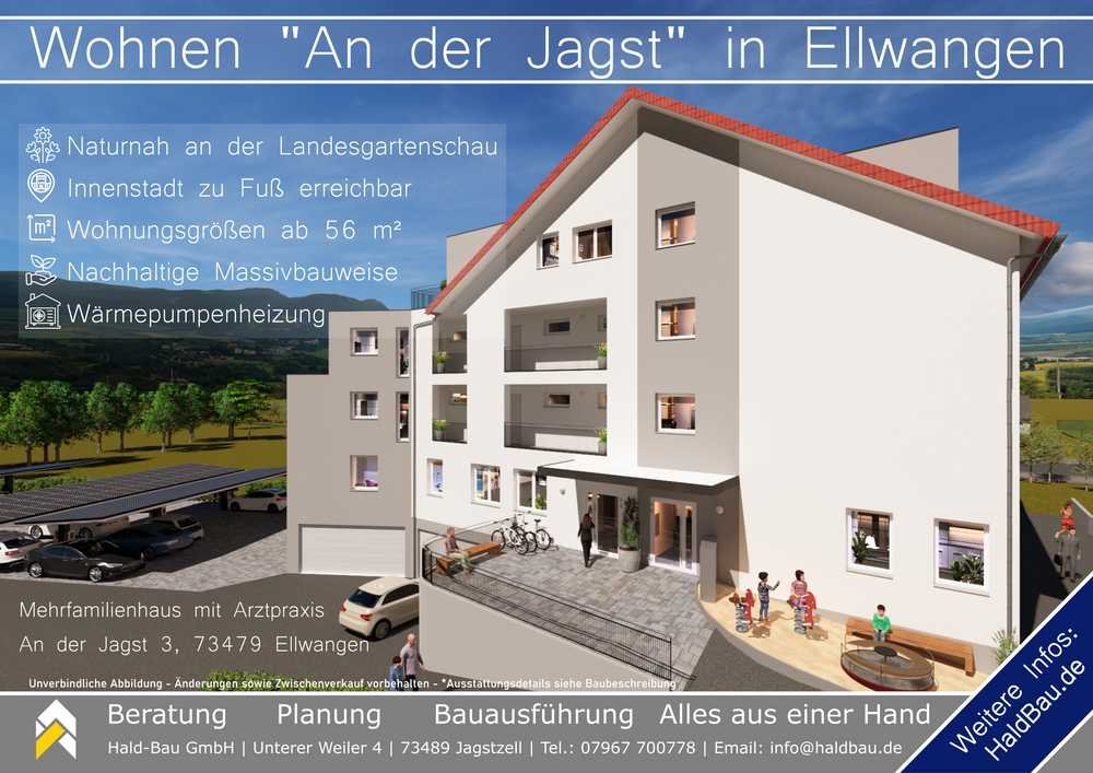 Nahe der historischen Altstadt Ellwangens entsteht in attraktiver Lage Wohneigentum in Massivbauweise für individuelle Ansprüche. Insgesamt zehn Wohneinheiten und die Garagen sind bequem mit dem Aufzug erreichbar. In nur wenigen Gehminuten erreichen Sie Ellwangens Innenstadt mit ihrer intakten Infrastruktur wie zum Beispiel das Ärztezentrum, den ÖPNV und das Wellenbad. Besonderheit: Durch die Landesgartenschau 2026, welche umittelbar an unserem Projekt beginnt, wird ihren Bewohnern nachhaltig Erholung und Natur bieten.