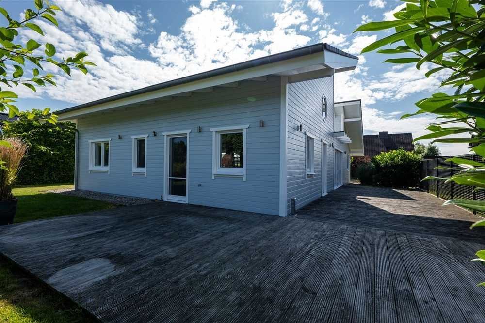 Dieses Einfamilienhaus ist besonders – besonders energieeffizient, besonders geschnitten, besonders charmant. In Holzständerbauweise mit Klimabodenplatte und KfW 55-Standard erbaut, ist dieses Haus klimafreundlich und zusätzlich mit einer Fernwärmeheizung, die mit Biogas betrieben wird, ausgestattet. Das Haus stammt aus dem Jahr 2013 und erstreckt sich auf insgesamt ca. 120 m² und 3 Zimmern zzgl. offener Galerie (ca. 21m²), die individuell genutzt werden kann. Die offene Bauweise mit sichtbaren Balken und die vielen bodentiefen Fenstern verleihen dem Haus eine herrlich luftige Atmosphäre und sorgen für viel Licht im ganzen Haus. Es stehen zudem zwei Badezimmer zur Verfügung – ein Vollbad mit Fenster und ebenerdiger, barrierefreier Dusche und ein Duschbad, ebenfalls mit Fenster und ebenerdiger, barrierefreier Dusche ausgestattet. Ein weiteres Highlight dieser Immobilie ist die ruhige Feldrandlage in Nord-/Westlicher-Ausrichtung. Auf der großen Holzterrasse und dem weitläufigen Garten können Sie rund um die Uhr die Sonne und Erholung, sowie Ruhe im Grünen genießen.
