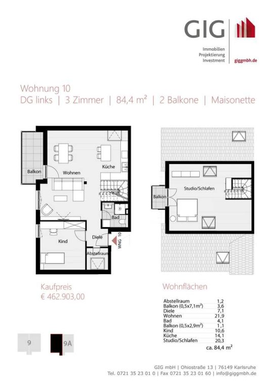 Die hier angebotene 3-Zimmer-MAISONETTE-Wohnung befindet sich im 2. und 3. Obergeschoss links und bietet Ihnen eine Wohnfläche von ca. 84,4 m².