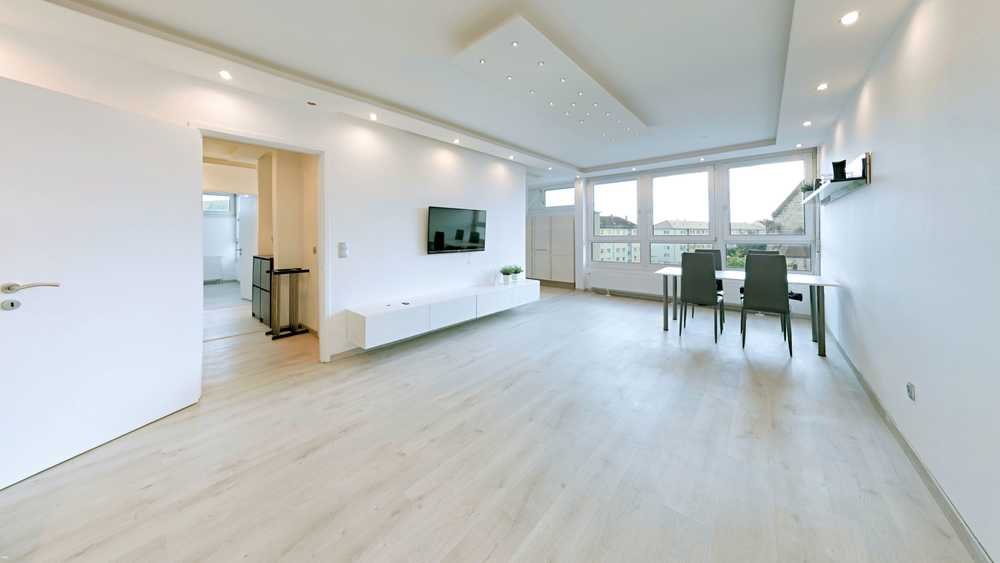 Der großzügige Wohn- und Essbereich wurde offen gestaltet und durch einen gezielten Durchbruch mit der Küche verbunden, was für ein zeitgemäßes Wohngefühl sorgt. Die Einbauküche verbleibt in der Wohnung; lediglich der Kühlschrank wird vom Eigentümer mitgenommen.
