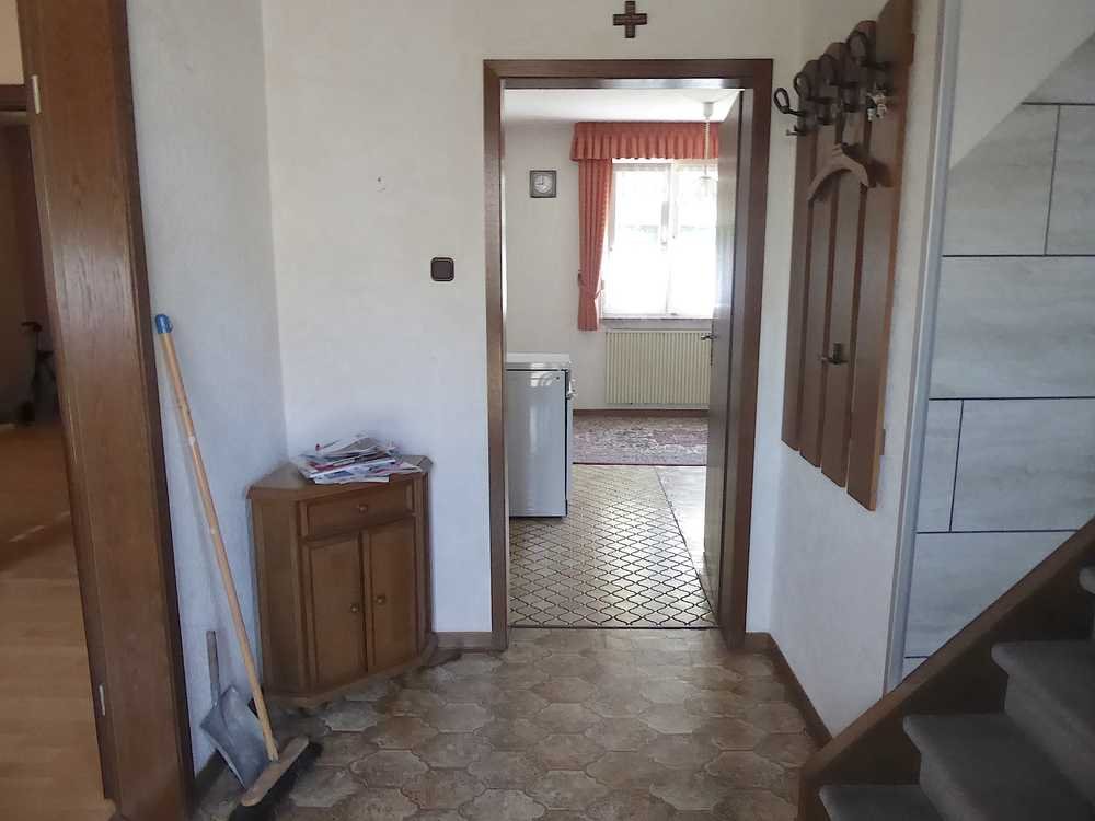 Hier ist die Kurzfassung: Das Haus ist ebenerdig mit einer Stufe zugänglich und bietet einen geräumigen Flur. Links befinden sich das helle Wohnzimmer mit Durchgang zum Esszimmer und Zugang zur Küche, die eine praktische Speisekammer hat. Rechts liegt das Tageslichtbad mit Wanne und Dusche. Im Obergeschoss gibt es eine weitere Küche, ein großes Wohnzimmer mit Balkon, ein Bad mit Dusche und Wanne sowie ein Schlafzimmer, zwei Kinderzimmer und einen ausgebauten Dachboden, der vielseitig nutzbar ist. Eine Trennwand könnte zwei separate Wohnungen schaffen. Im Keller gibt es Heizungskeller, Waschküche, zwei Lagerräume, einen Partykeller mit Bar und ein ehemaliges Öllager. Für Fahrzeuge stehen eine Doppelgarage, Carport, Hofstellplätze und ein Schuppen bereit. Der Garten ist eben, mit einem Pavillon und einer gepflasterten Einfahrt, die auch als Terrasse genutzt werden kann.