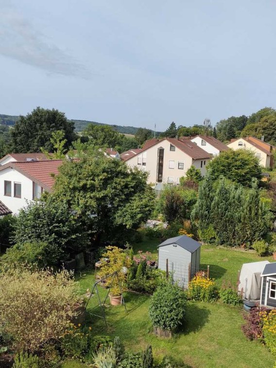 Die architektonisch reizvolle Wohnung im 2.OG besteht aus einem großzügigen Wohn/Essbereich (Wfl 33 m²) , einer Küche, Schlaf- und Kinderzimmer sowie einem Bad mit Dusche und dem separaten Gäste-WC. Die nach Südwesten ausgerichtete Loggia bietet Ihnen eine tolle Aussicht auf den Naturpark Schönbuch..