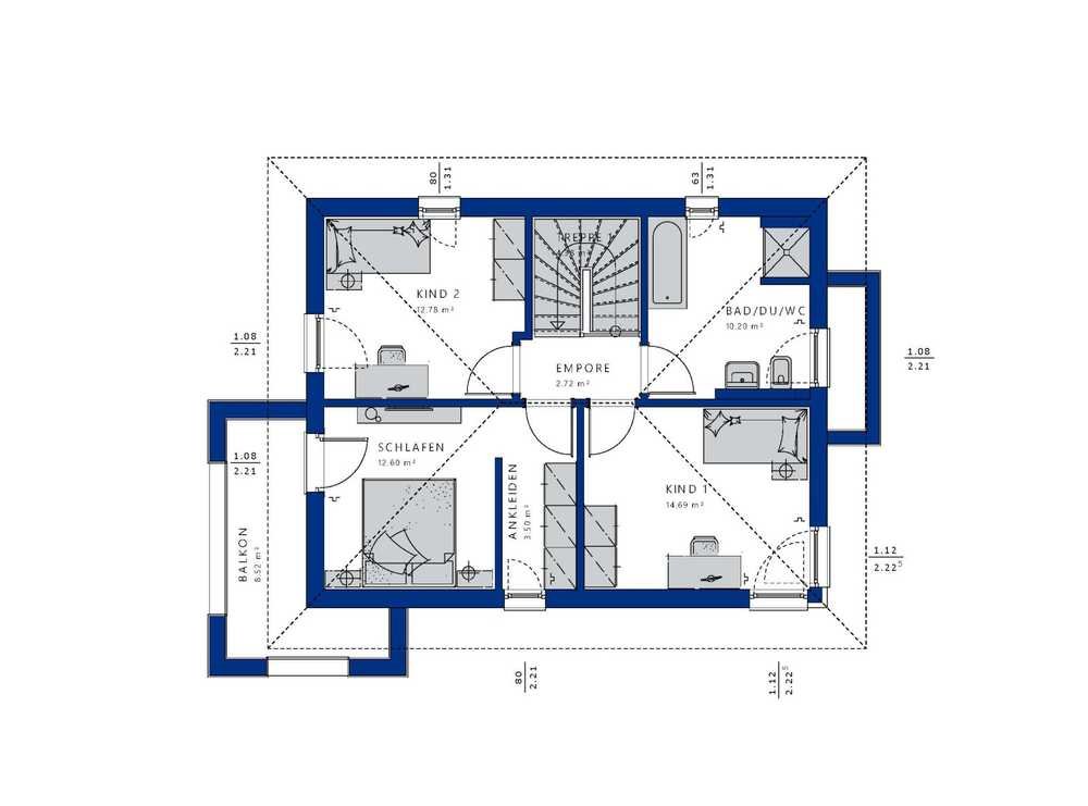 Im Obergeschoss finden Sie 2 große Kinderzimmer. Ein Elternschlafzimmer mit Ankleidezimmer und ein traumhaftes Badezimmer runden das Angebot ab.