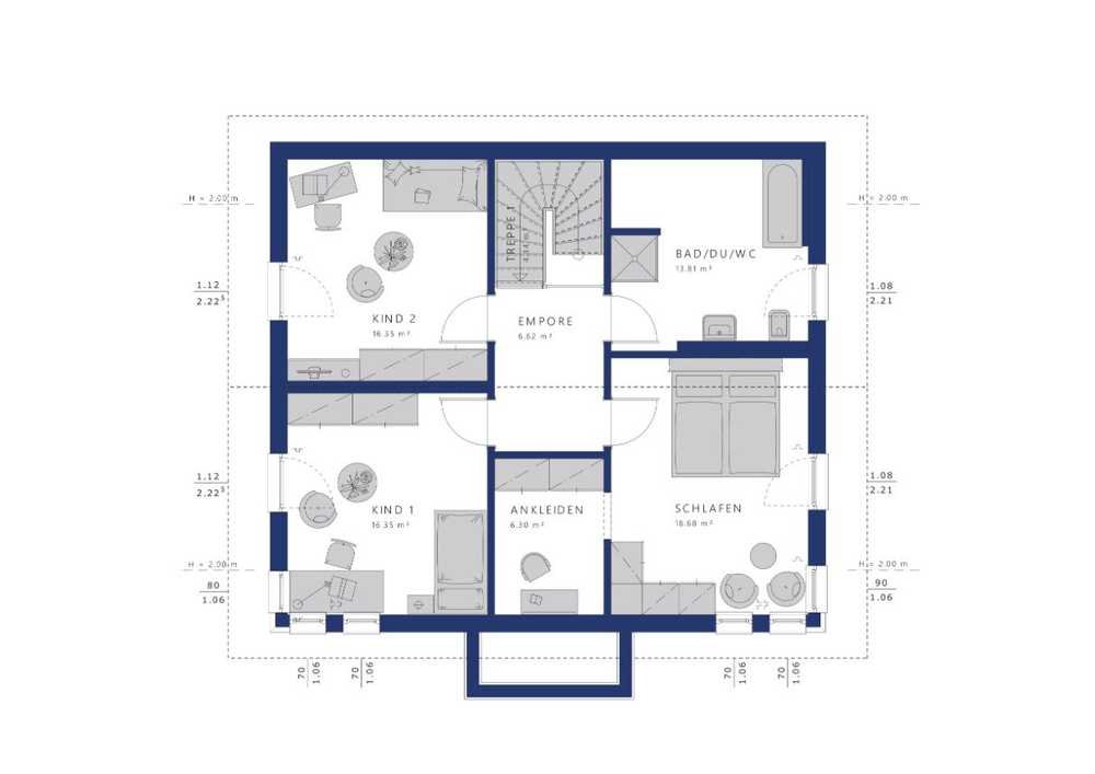 Das Bien-Zenker EVOLUTION 165 ist nicht nur ein Haus, sondern ein Ort, der Ihre Lebensqualität auf ein neues Niveau hebt. Mit einer großzügigen Wohnfläche von 174,78 m² und einer geschickten Aufteilung auf zwei Etagen bietet dieses Fertighaus Raum für Ihre Träume und Ideen. Die sieben Zimmer sind harmonisch miteinander verbunden und schaffen eine Atmosphäre, in der das Familienleben im Erdgeschoss und die Rückzugsmöglichkeiten im Obergeschoss perfekt in Einklang stehen. Hier genießen Sie nicht nur viel Licht, sondern auch die Freiheit, Ihre individuellen Wünsche und Vorstellungen in die Architektur einfließen zu lassen. Ob vier Schlafzimmer für die ganze Familie oder ein Badezimmer, das alle Bedürfnisse abdeckt - dieses Zuhause wird ganz nach Ihren Vorstellungen gestaltet und lässt keine Wünsche offen.