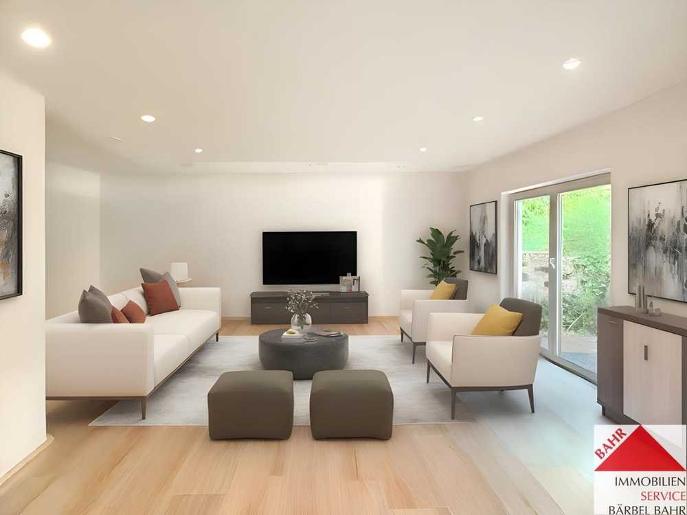 Im Erdgeschoss befindet sich ein heller Wohnbereich mit direktem Zugang zum Garten, der sich ideal für Kinder oder zum Entspannen im Grünen eignet.