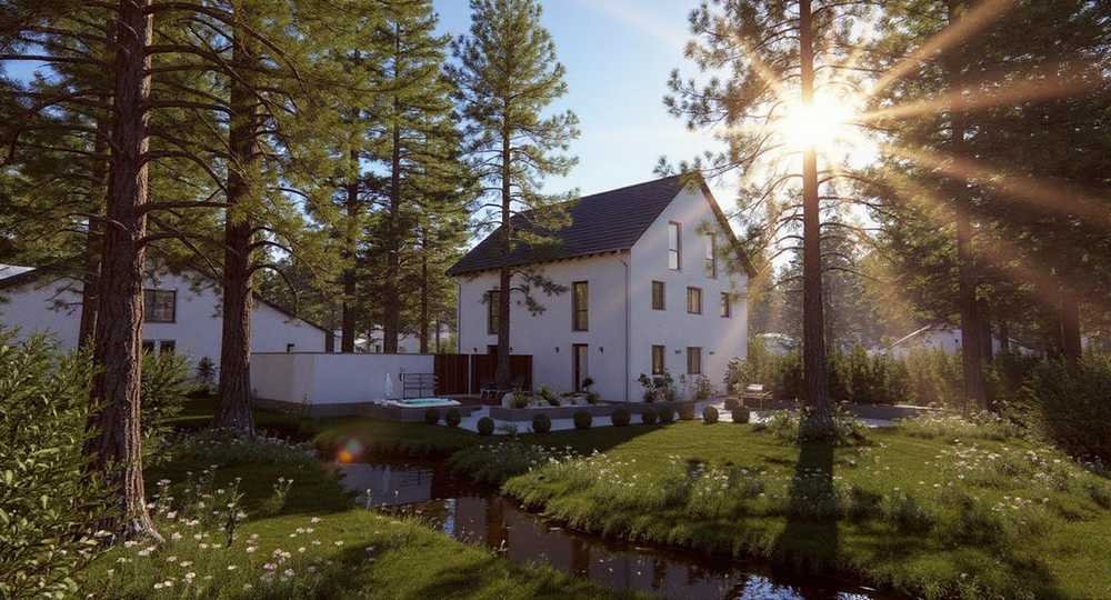 Die durchdachte Architektur der Doppelhaushälfte nutzt die Grundstücksfläche effizient und bietet ein komfortables Wohnkonzept für Familien. Im Erdgeschoss bildet die offene Wohnküche mit angrenzendem Wohnbereich das Herzstück des Hauses. Ergänzt wird dieser Bereich durch ein Gästebad sowie einen funktionalen Hauswirtschaftsraum. Das Obergeschoss ist für die Kinder vorgesehen und bietet zwei geräumige Zimmer sowie ein großes Badezimmer mit Badewanne. Der private Elternbereich im Dachgeschoss verfügt über ein großzügiges Schlafzimmer mit eigenem Ankleideraum und Badezimmer.