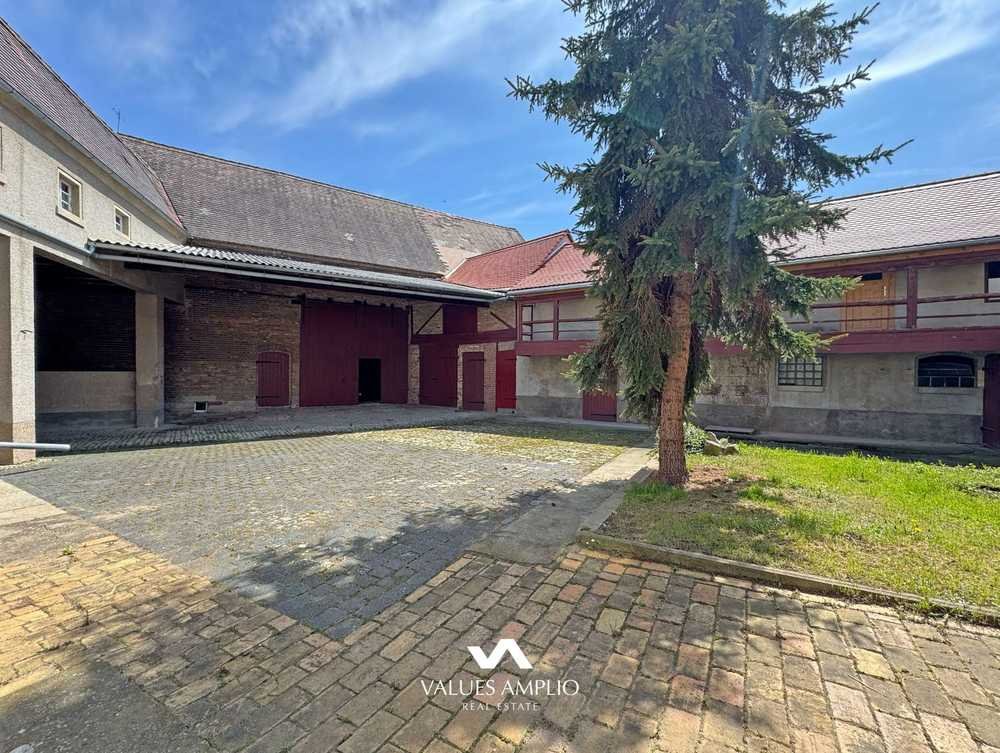 Das Ensemble aus Wohnhaus und mehreren Nebengebäuden befindet sich auf einem großzügigen Grundstück mit 2.150 m² Gartenfläche, inklusive großer Zufahrt direkt zum Garten – perfekt für individuelle Nutzungskonzepte.