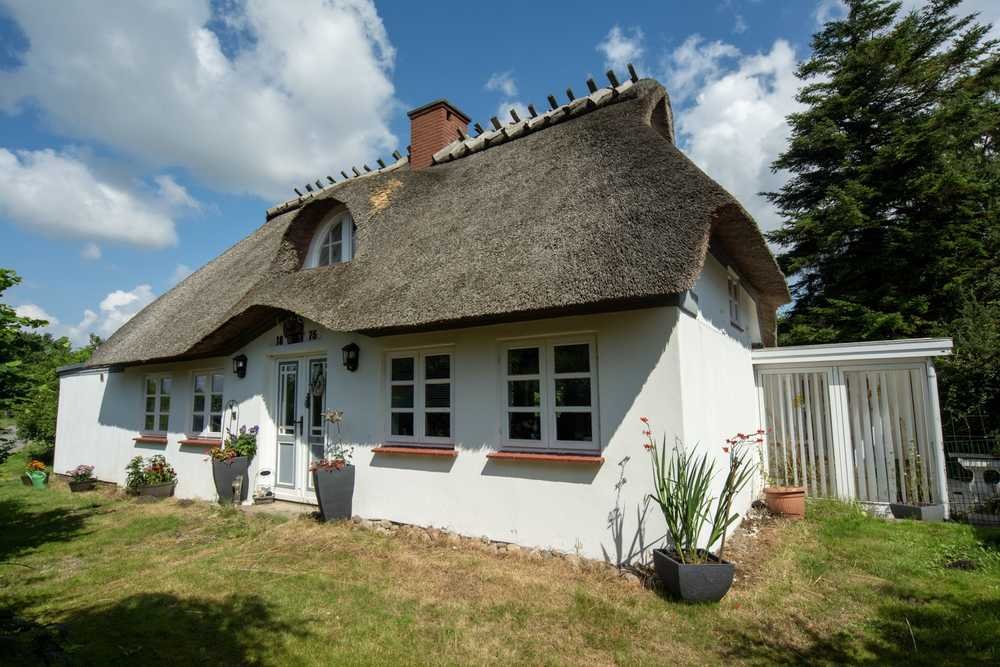 Herzlich Willkommen in Quern: Diese traumhafte Reetdachkate vereint historischen Charme mit modernem Komfort und bietet auf ca. 110 m² Wohnfläche ein besonderes Wohnerlebnis. Das idyllische Anwesen wurde 2017 aufwendig saniert und verbindet liebevoll erhaltene Elemente wie offene Balkenlage mit hochwertiger Ausstattung.