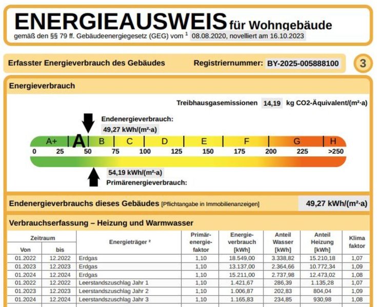 | Endenergiebedarf: | 49,27 kWh/(m²*a) |