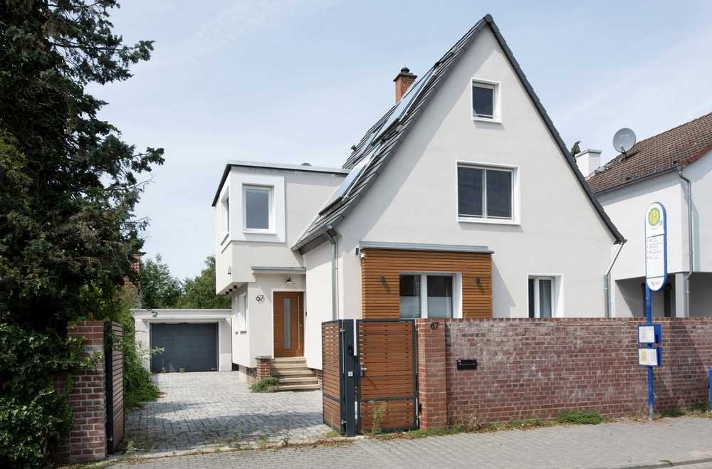 Das ursprünglich im Jahr 1959 erbaute Haus steht auf einem 520 Quadratmeter großen Grundstück und wurde im Zuge einer Kernsanierung durch einen Anbau erweitert. Es vereint den Charme eines Giebelhauses mit modernen Elementen einer hochwertigen Ausstattung. Neben modernen Fliesen in neutralen Farben besticht das Haus in den Wohnräumen und Fluren insbesondere durch einen massiven HolzdielenFußboden, der für ein gemütliches Ambiente sorgt. Zudem verfügt das Haus über eine Alarmanlage, elektrische Rollläden und die Infrastruktur für Smart-Home.