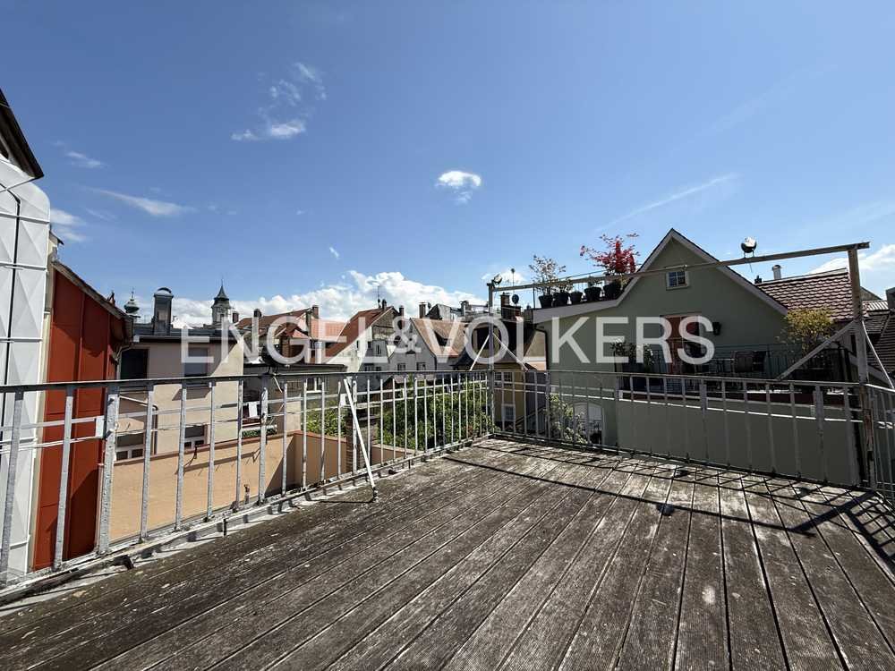 Das Obergeschoss vermittelt durch das Fachwerk und der ehemals als Krangaube genutzten Fläche, seinen ganz eigenen Charme. Von hier aus gelangen Sie auf die Dachterrasse mit einem tollen Ausblick auf die historischen Altstadthäuser der Lindauer Insel.