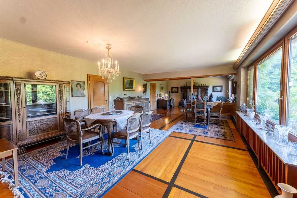 In absolut ruhiger Lage von Dornstetten-Aach erwartet Sie ein außergewöhnliches Anwesen, das durch seine Großzügigkeit, seine besondere Architektur und eine exklusive Ausstattung beeindruckt. Das 1959 erbaute und 2014 teilrenovierte Wohnhaus bietet auf zwei Ebenen rund 358 m² Wohnfläche sowie ca. 103 m² zusätzliche Nutzfläche – ein seltenes Raumangebot, das vielfältige Nutzungsmöglichkeiten eröffnet.