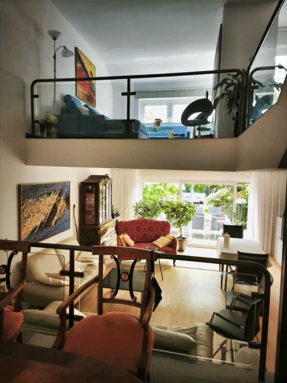 Der offene Wohn-, Ess- und Küchenbereich mit Galerie bildet das Herzstück des Hauses – ideal für gemeinsame Familienmomente. Von hier aus gelangen Sie direkt auf die sonnige Terrasse und in den pflegeleichten Garten, in dem Kinder spielen und Erwachsene entspannen können.