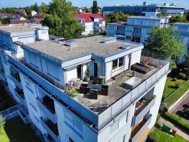 Das Herzstück der Wohnung bildet der helle und offen gestaltete Wohn- und Essbereich mit offener Küche mit Einbauküche. Von hier aus gelangen Sie auf die großzügige Dachterrasse – ein echtes Highlight und Ihr persönlicher Rückzugsort mit traumhaftem Blick über die Dächer der Stadt.